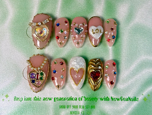 'Heart of Gold’ Bejeweled Valentines Day Press On Nails