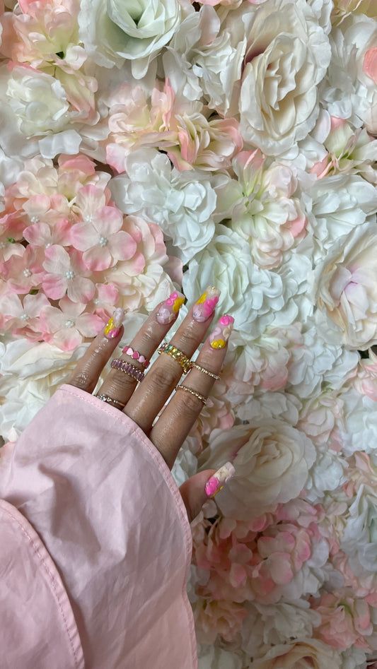 Acrylic sculpted flower inspired gem pastel neon reusable press on nails