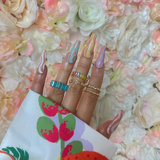 Embroidery nails textured pattern neon pastel cultural reusable press on nails