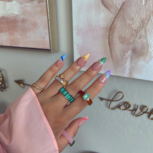 Neon pastel swirly color block French tip abstract retro reusable press on nails
