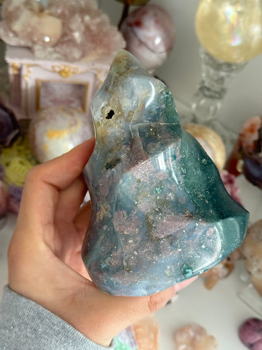 Pink/Emerald Green Bicolor Sea Jasper Flame -RESERVED