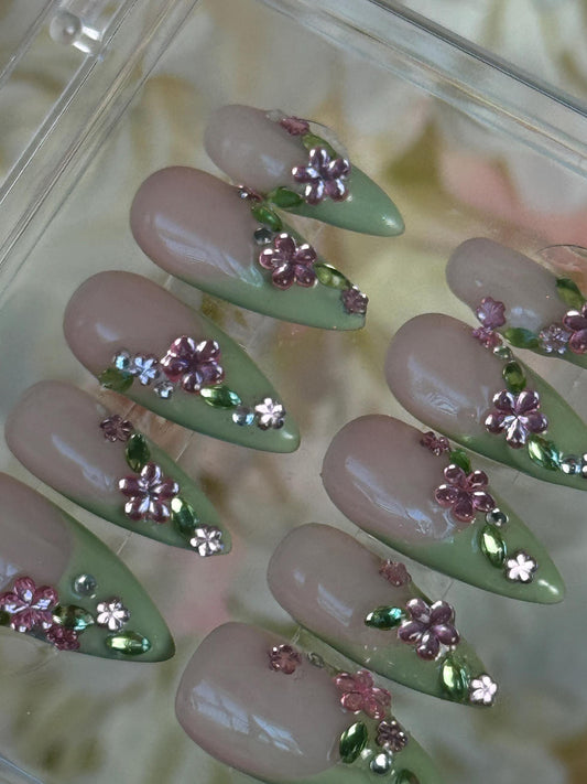 Ethereal Garden Sage Flower Gem-Reusable Press on Nails