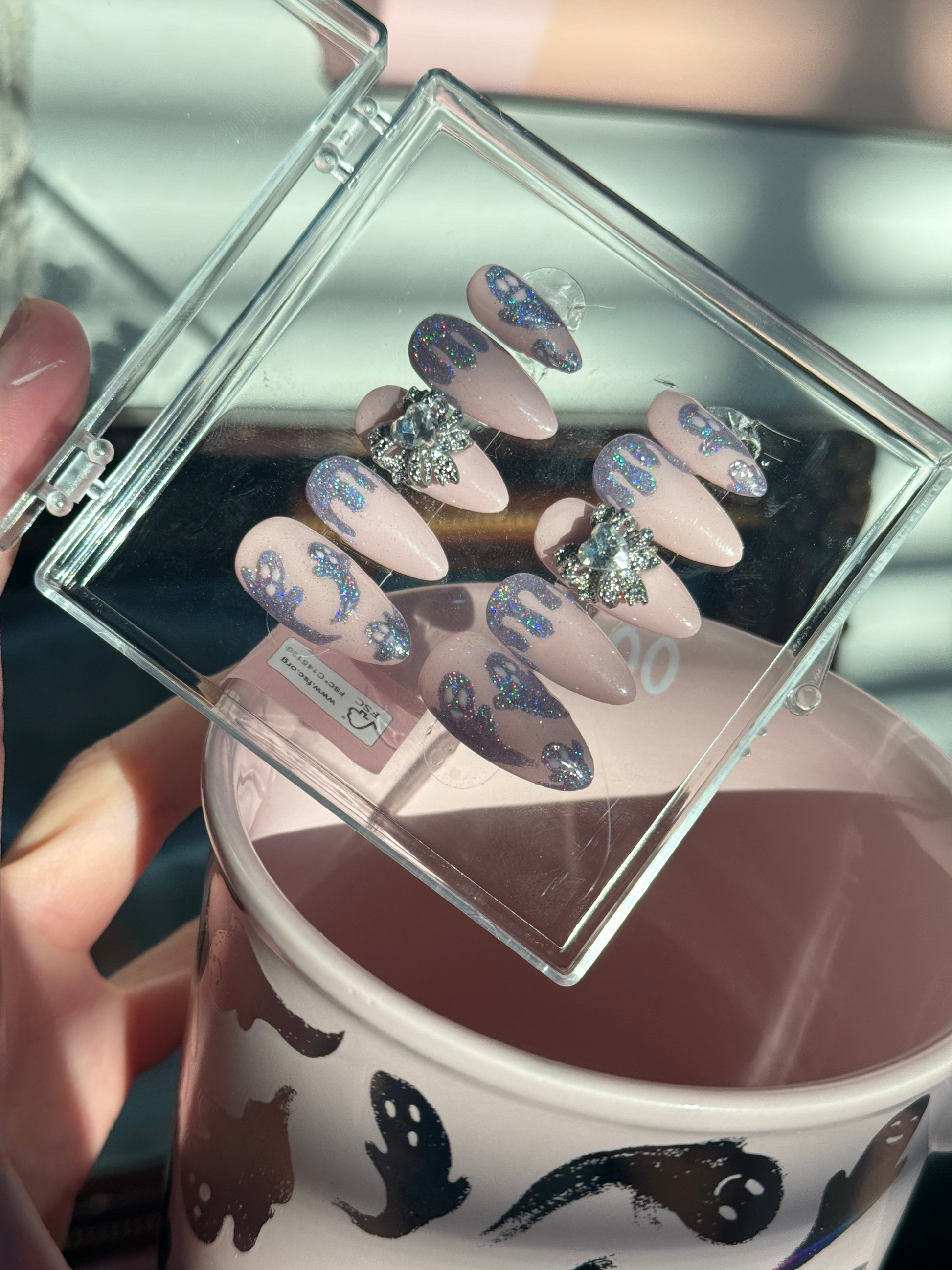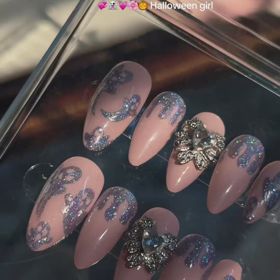 Sparkle this Halloween season with these incredible one of a kind press on nails ! Pick your color story from the list and have an Aesthetically beautiful Halloween !