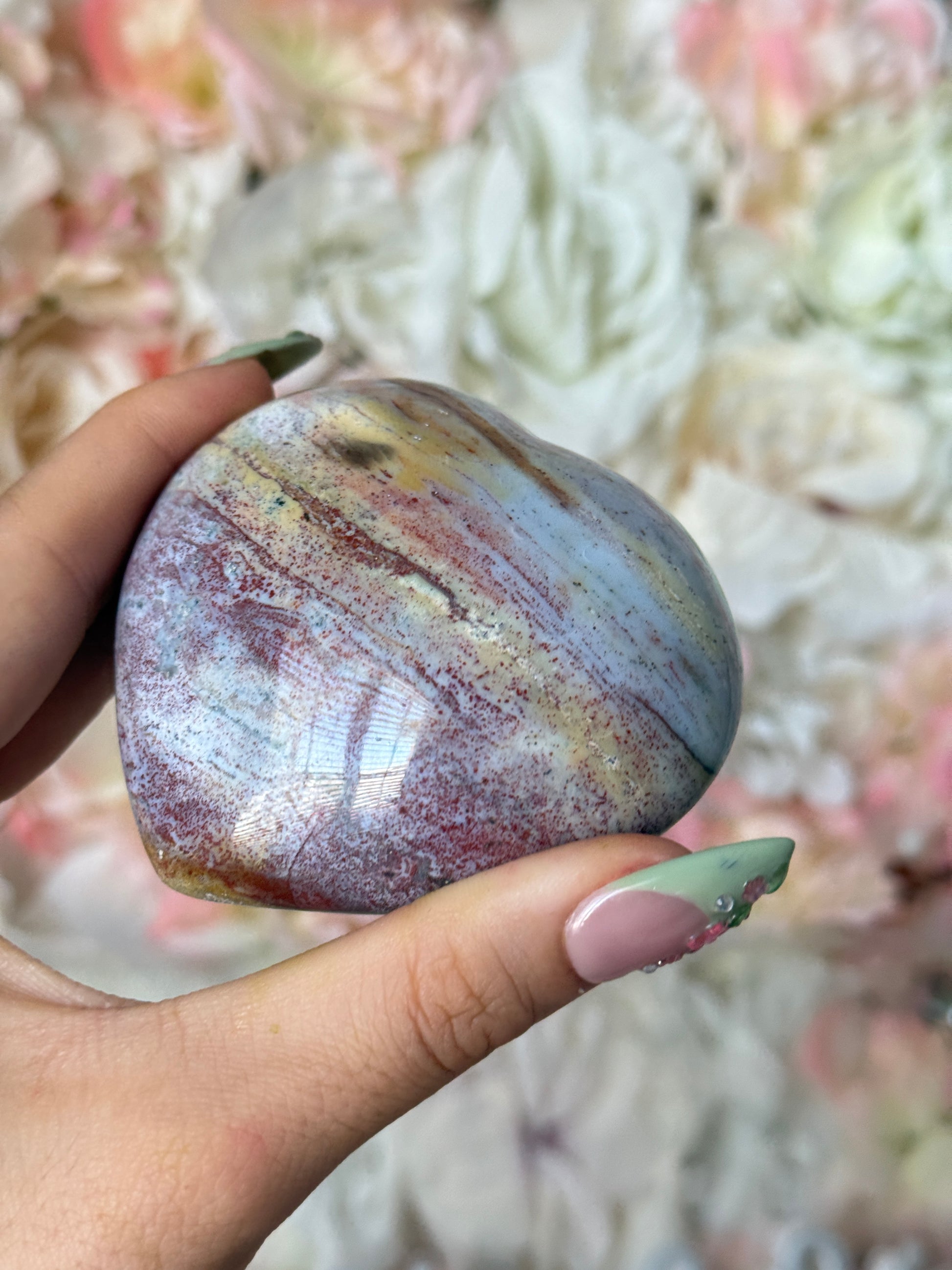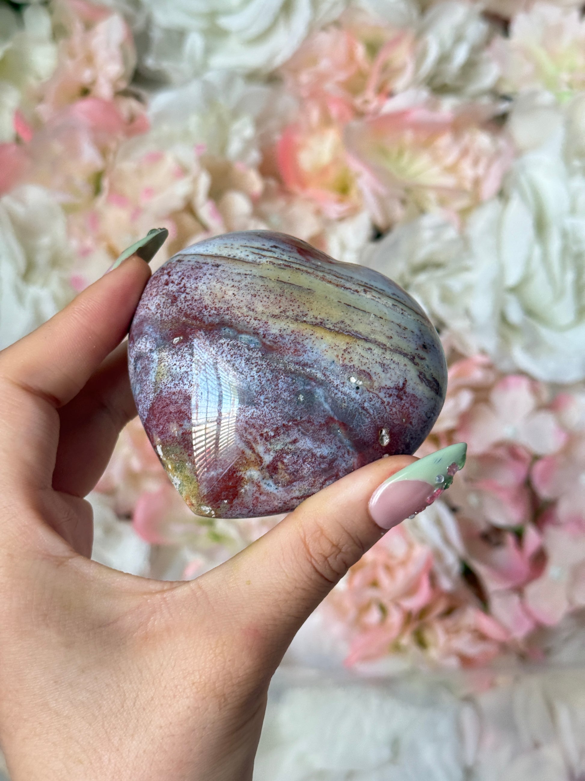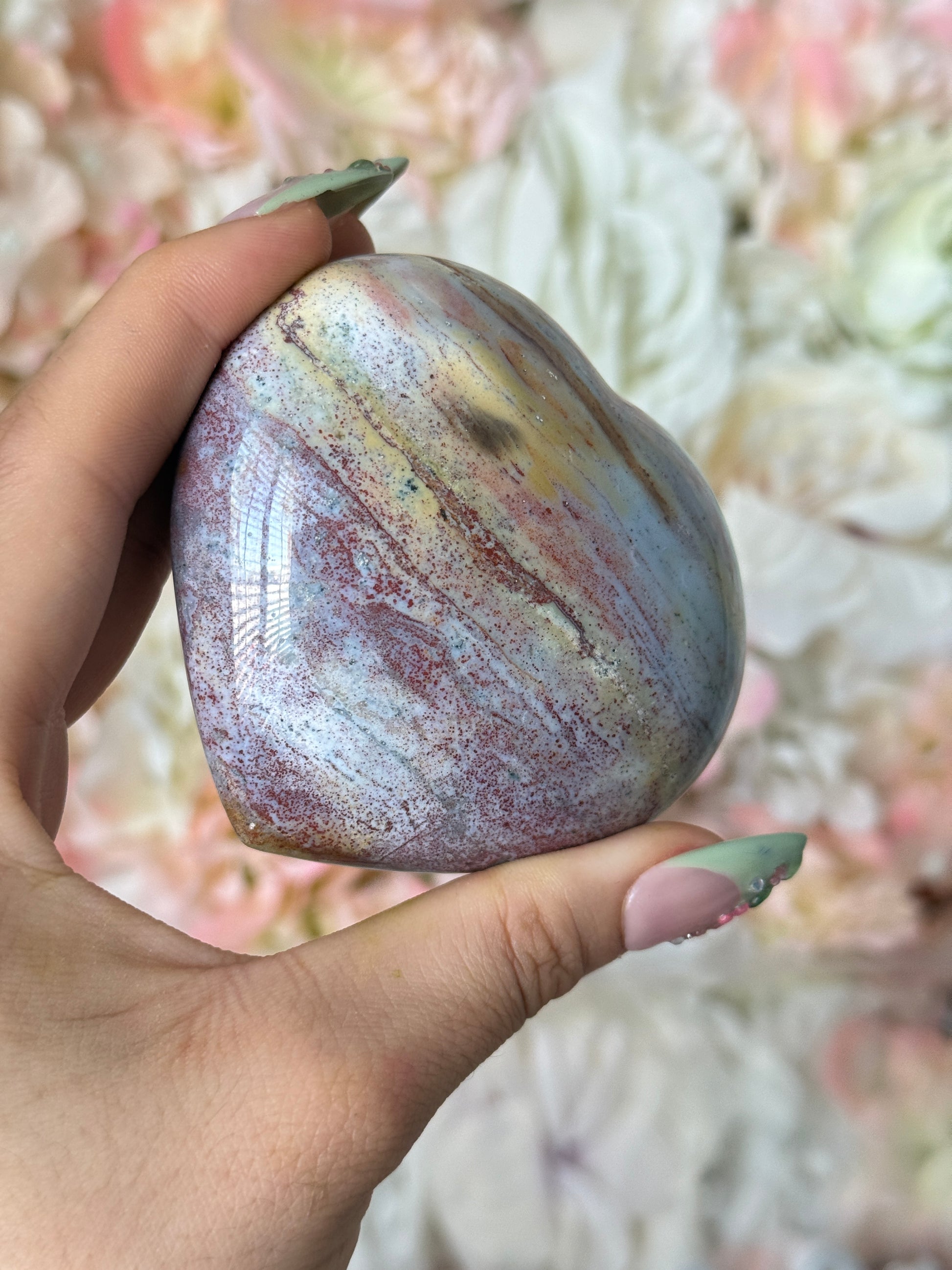 Yellow Maroon Cinnamon Speckled Sea Jasper Heart