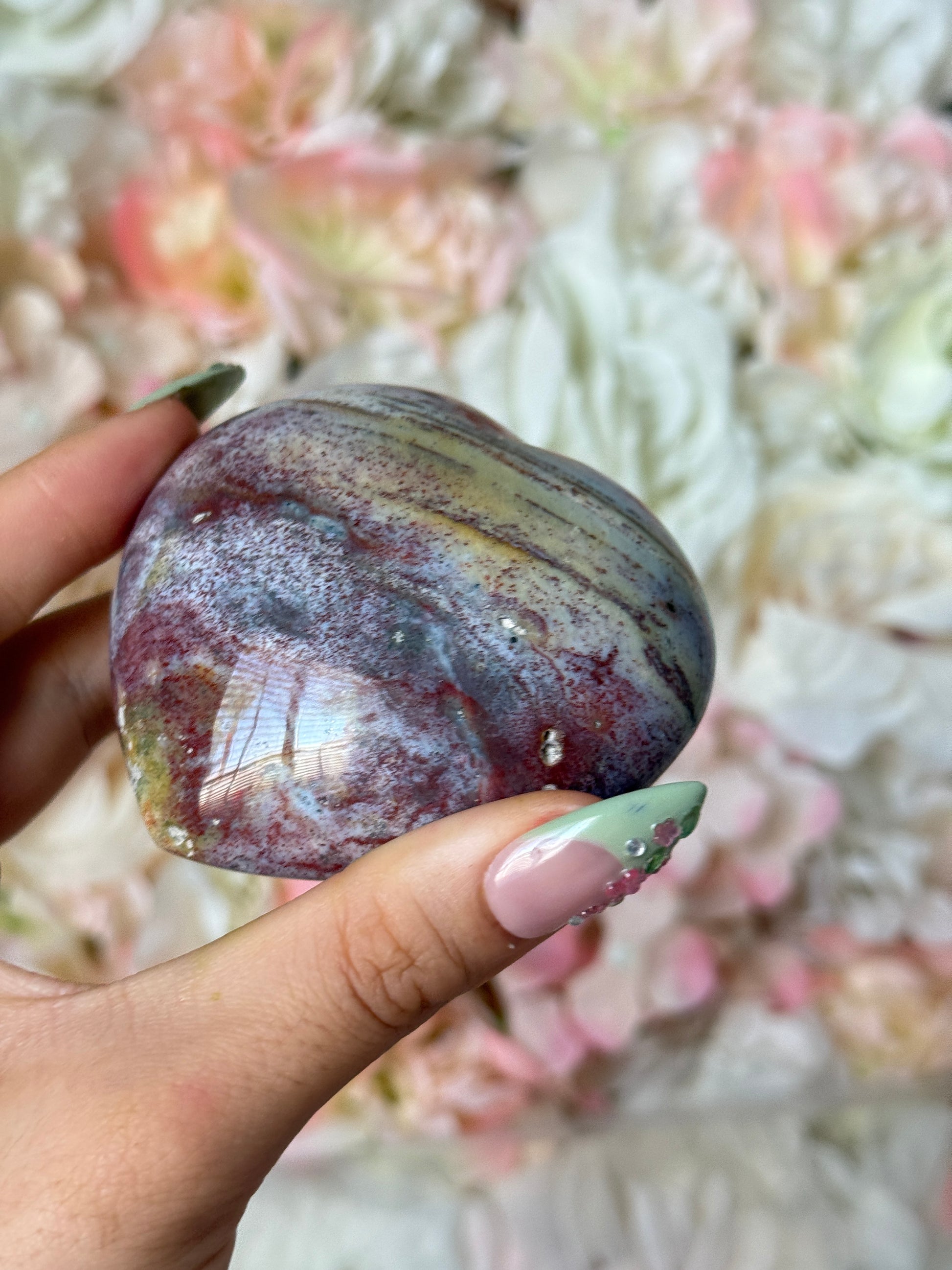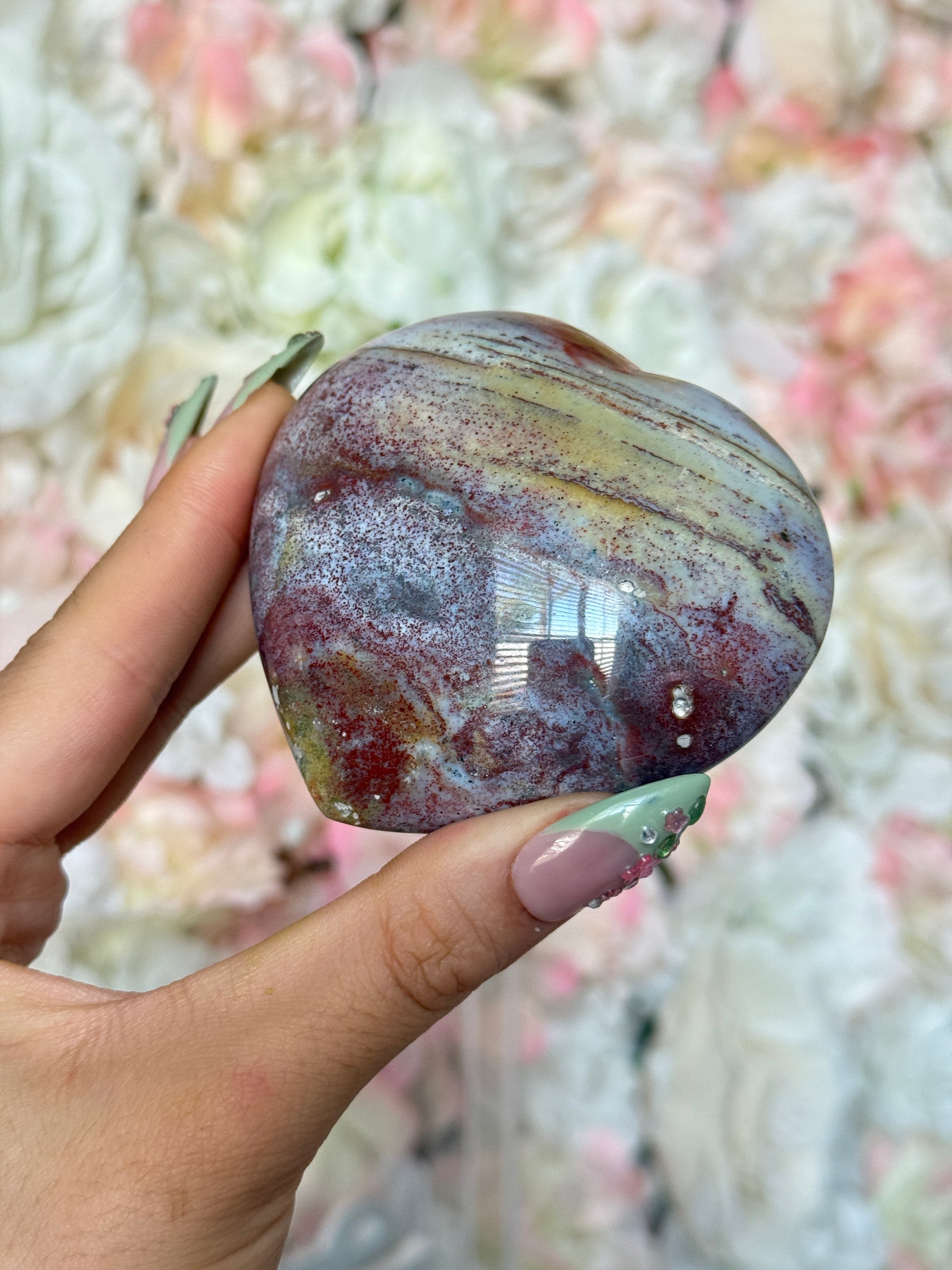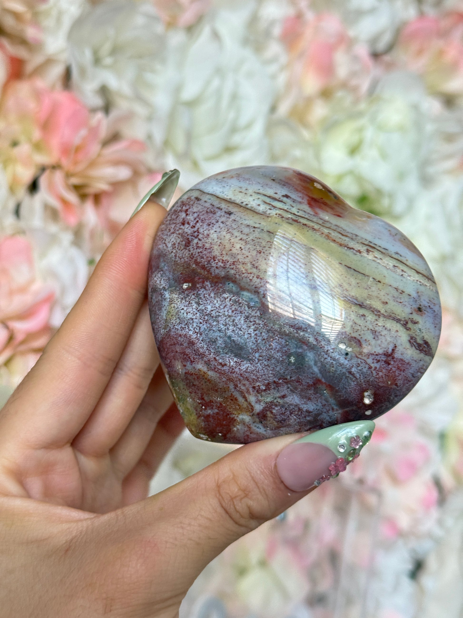 Yellow Maroon Cinnamon Speckled Sea Jasper Heart