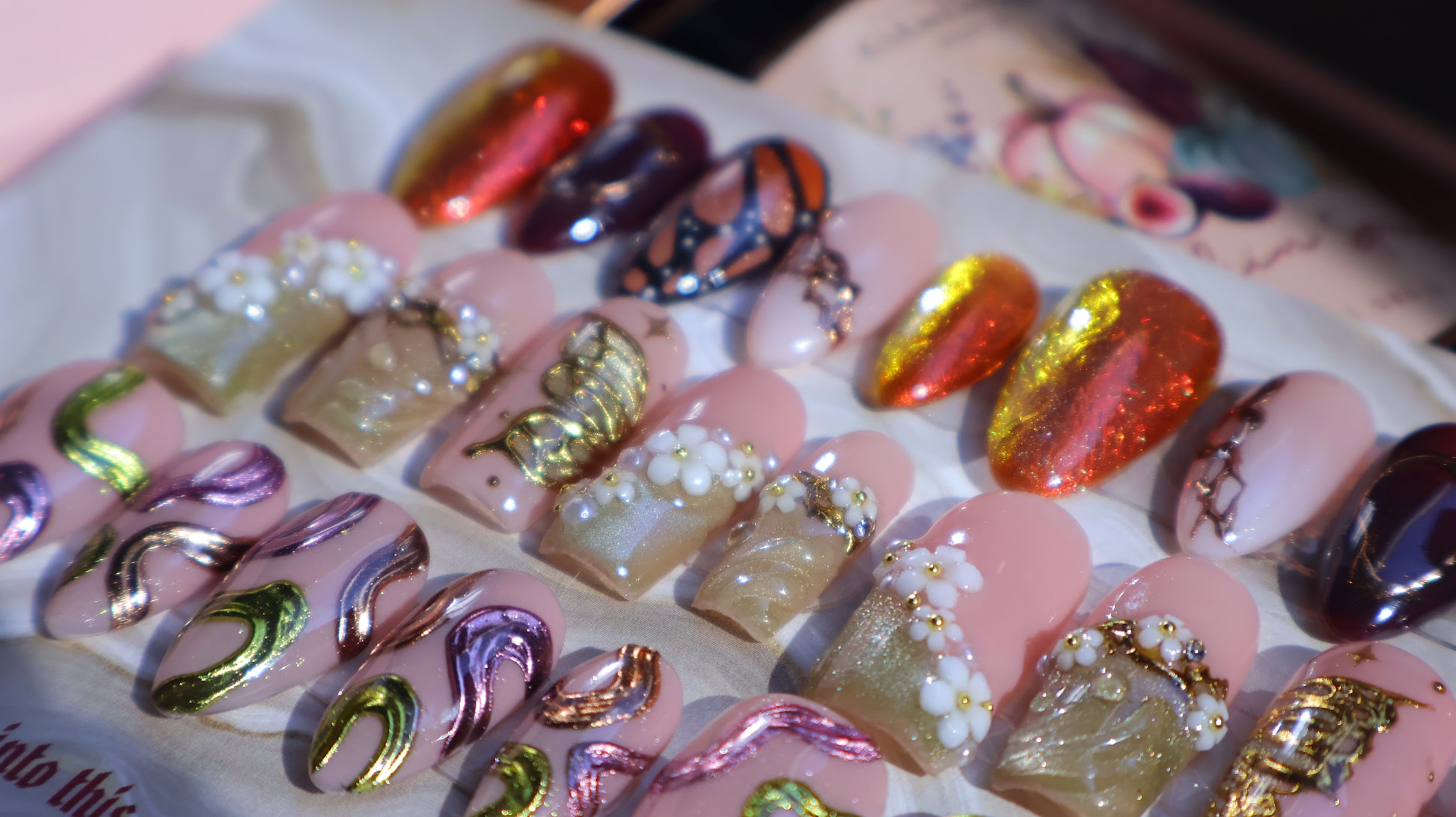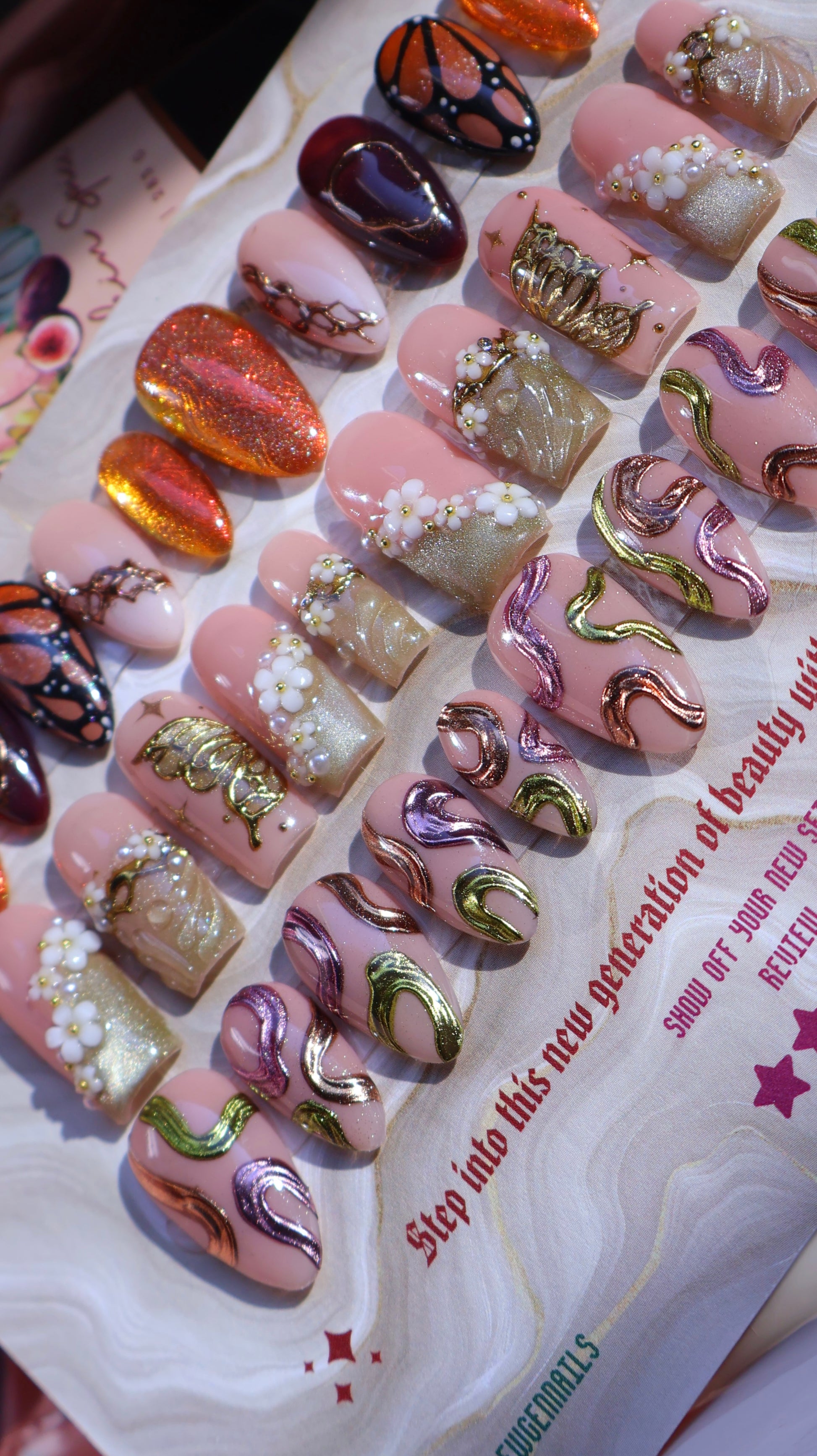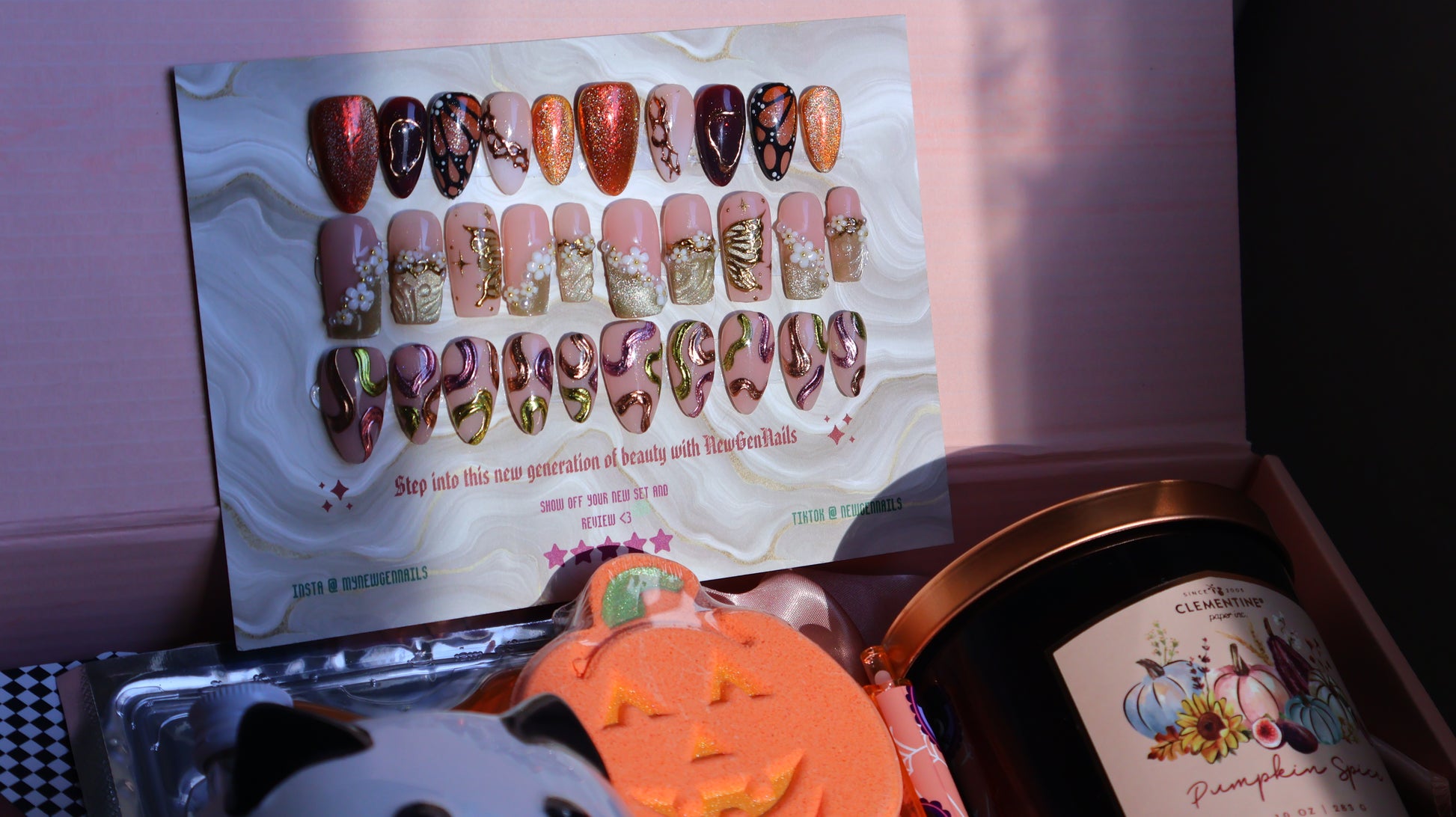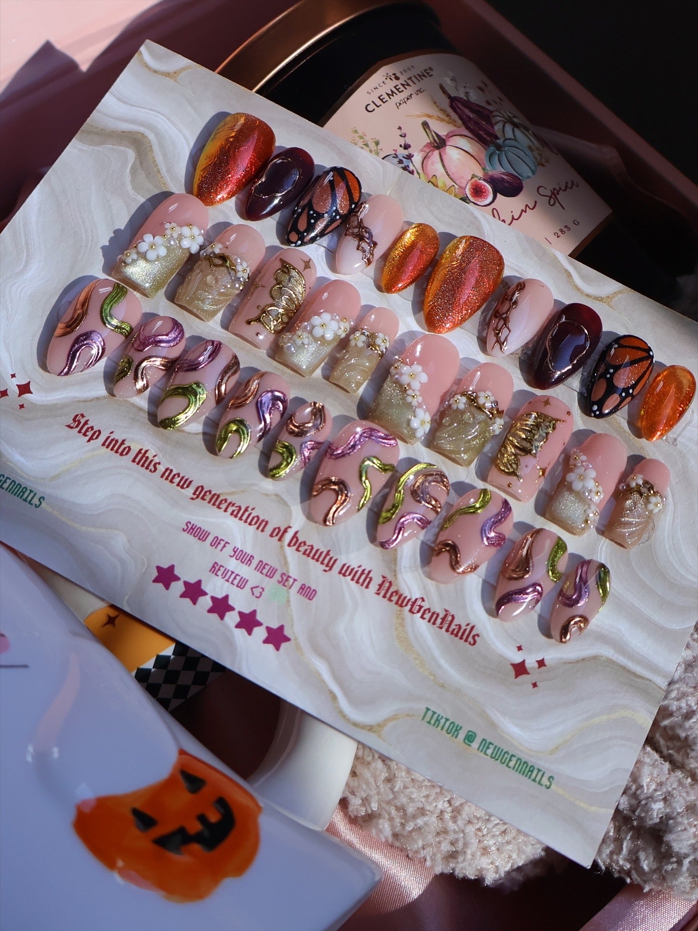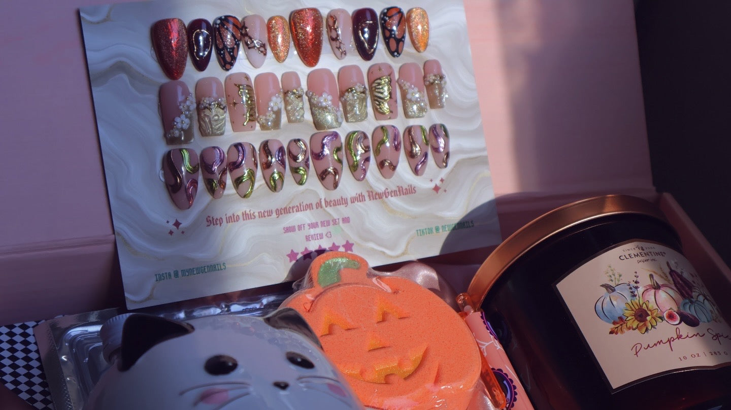 By picking the 'make me a mystery fall themed set' option, you are able to replace one of the predesigned sets for a mystery set! This is an amazing option to get a unique, personalized set based off what you love and want! All you need to do is type anything you'd like in your set; colors you love, elements you'd want and any colors or elements you'd NOT want! Please keep in mind that this is still a MYSTERY set, meaning I still have full reign on the set's design (while still trying to included all your general theme requests if possible). Requesting a specific, exact set is not permitted and picking this option means you agree that this set can be anything! Of course if you ask for an all pink, cutesy ghost nail set, I wont make a moody, gore set :) I will keep all theme requests in mind and do my best to make you a set you LOVE!
