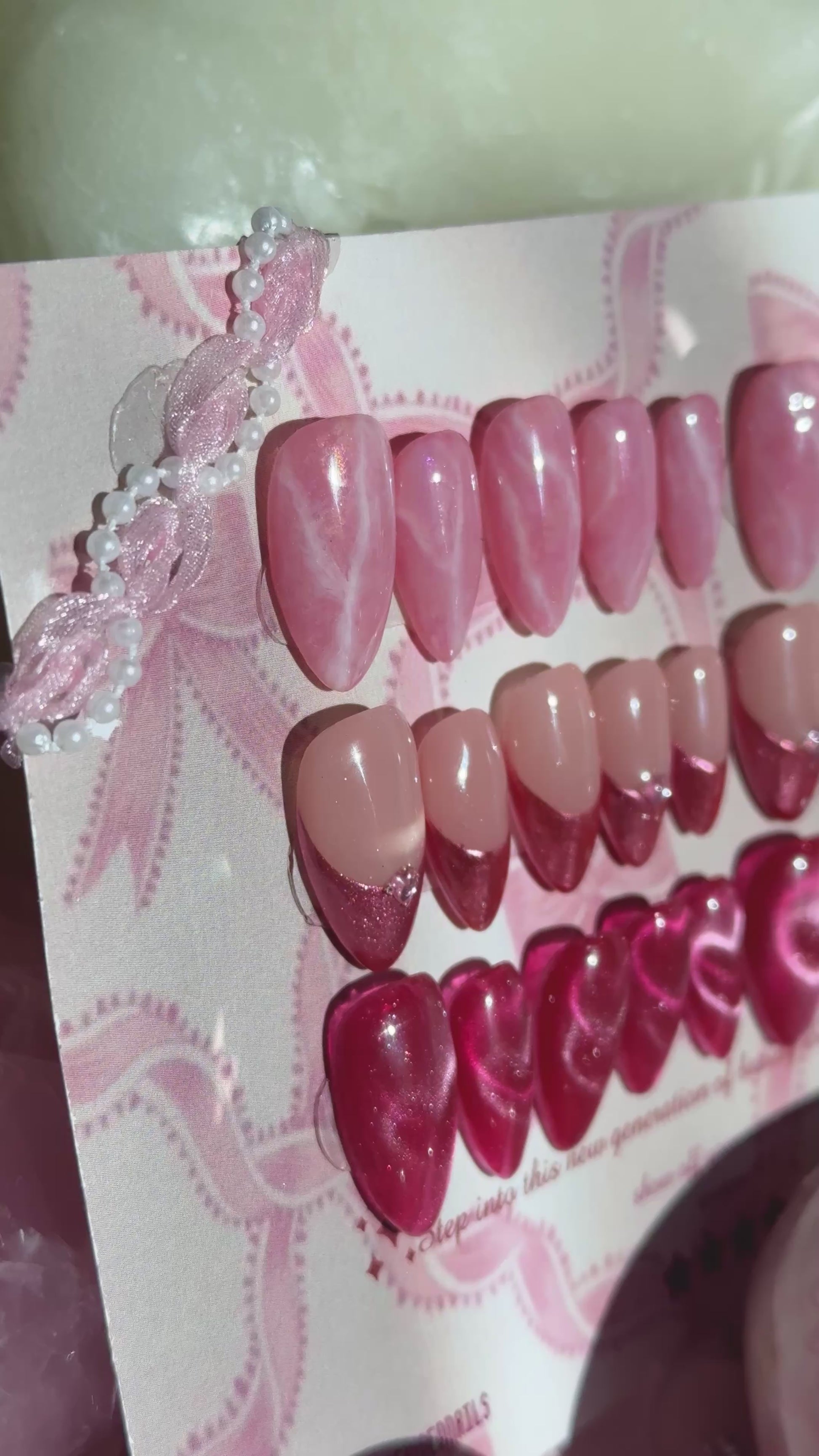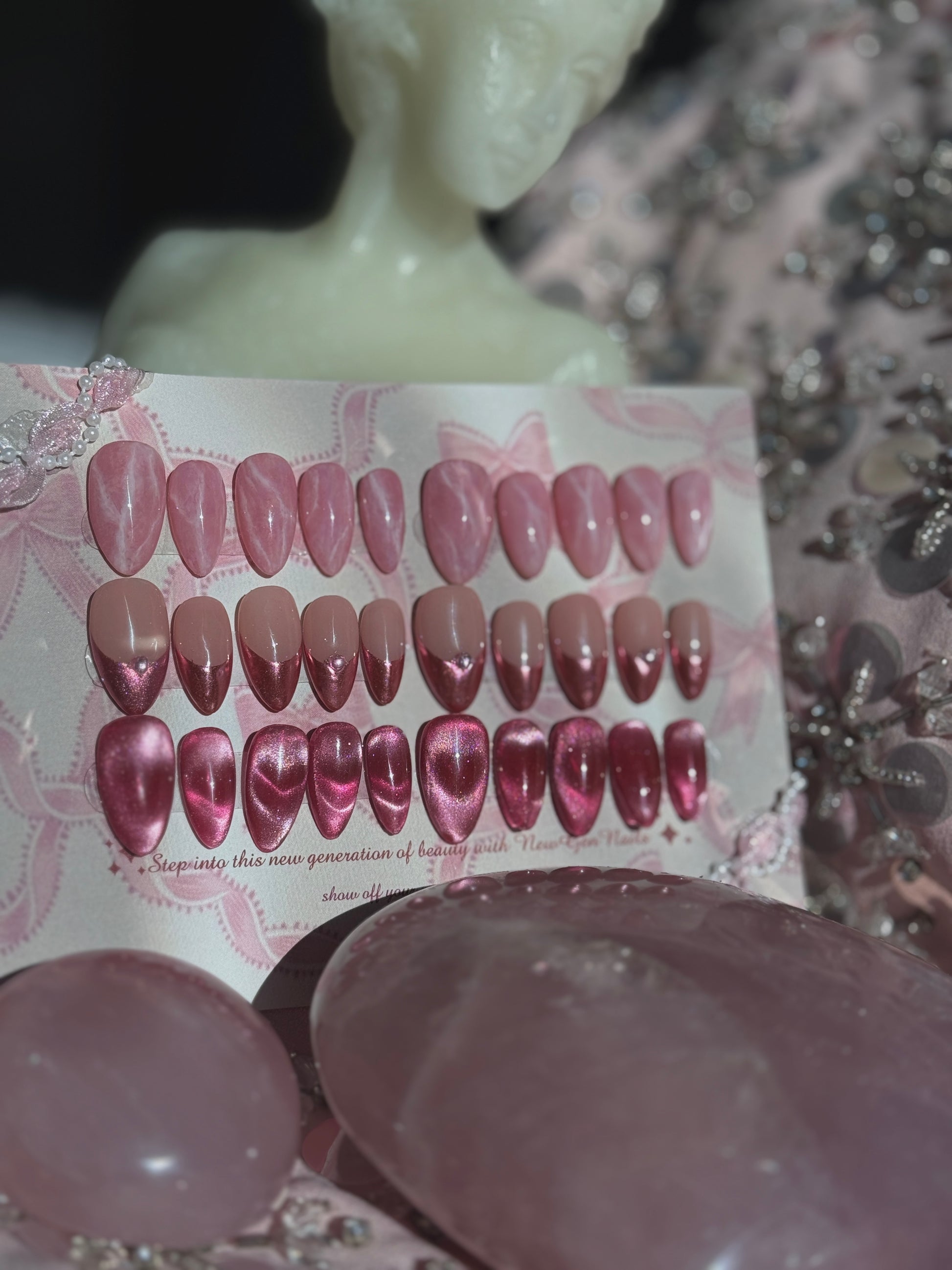 Enjoy the soft loving energy of rose quartz and velvety pink cat eyes this Valentines or Galentine's Day with these gorgeous nails! This set includes these three original designs at a discounted bundled price!
